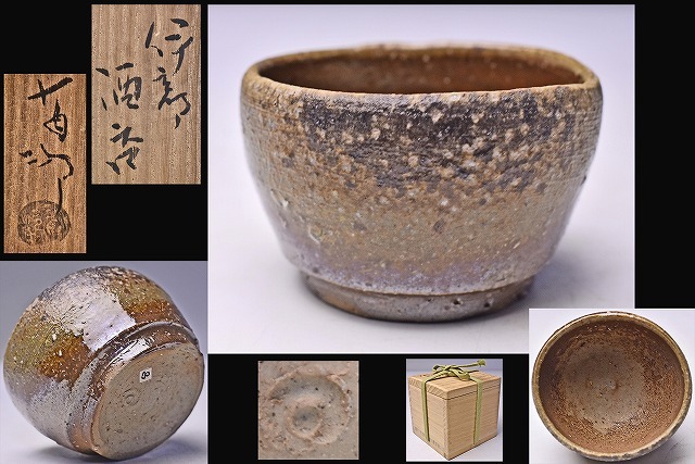 > 金重有邦 ★ 伊部 ぐい呑 ★ 共箱 ★ 父: 金重素山 ★ 山盃を思わせる愛らしい逸品 ★ 備前 酒器 ★検 金重まこと 金重陶陽 金重晃介