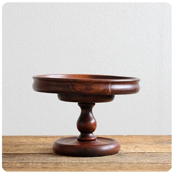 - イギリス アンティーク オーク材 コンポート ケーキスタンド 古木 盛皿 インテリア V-342