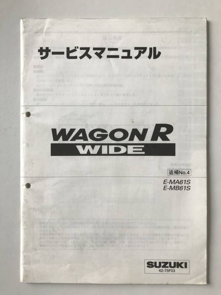- SUZUKI サービスマニュアル WAGON R WIDE E-MA61S E-MB61S 追補No.4 1998年10月 TM6928