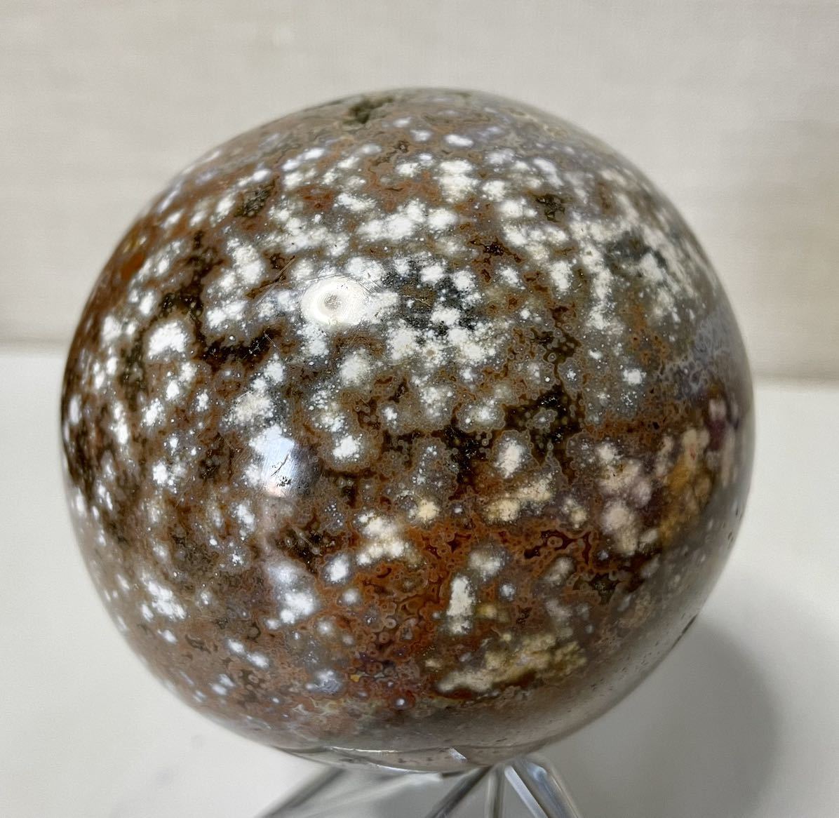 > オーシャンジャスパー キャビア模様 001 天然石 スフィア 結晶 水晶共生 ジオード 風水晶 置物インテリア 魔除 お守 ラッキー 魚卵模様