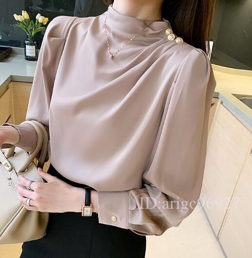 > H997★秋 エレガント 20304050代オフィス きれいめ シック 無地 レディース 長袖ブラウスシャツ S~XXL ピンク