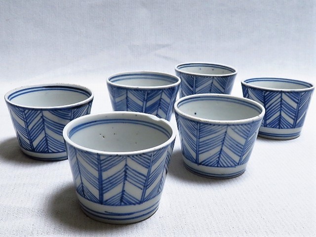 - 蕎麦猪口まとめて6客 そば猪口 染付 時代