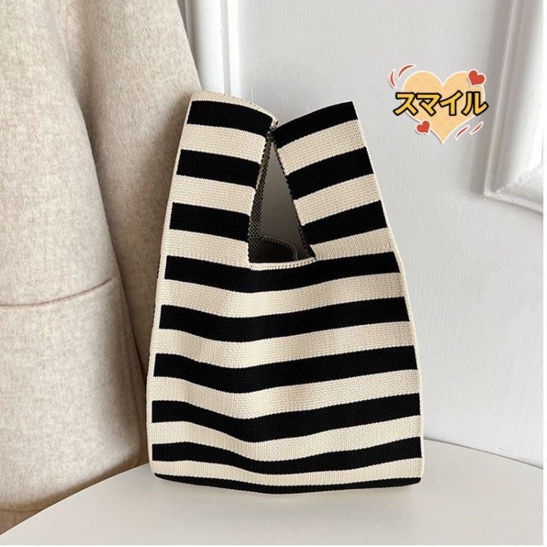 - レディースハンドバッグ コンパクトマイバッグ エコ カバン ボーダー柄