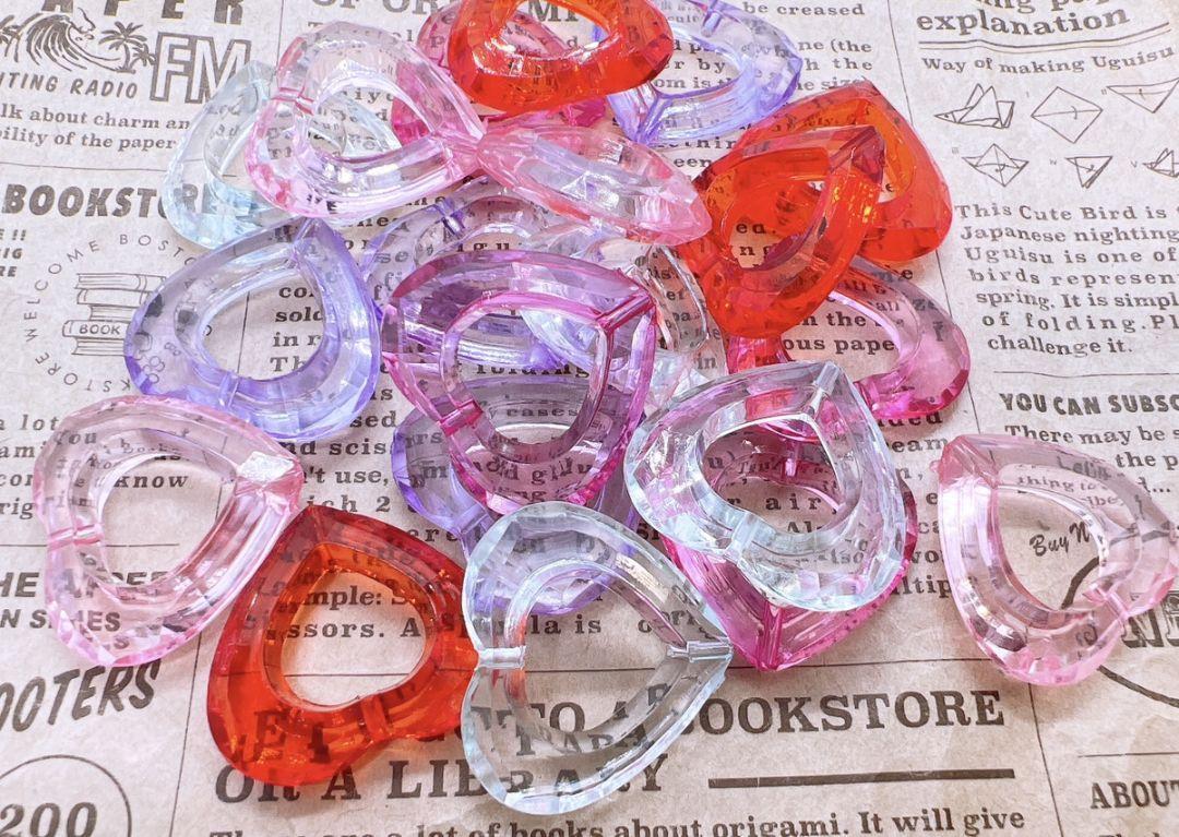 - クリアハートビーズ [5色-20個] デコパーツ プラパーツ デコチャーム