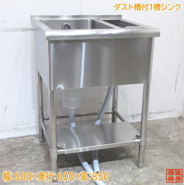 - 中古厨房 ステンレス ダスト槽付1槽シンク 600×600×850 1層流し台 /23D2706Z
