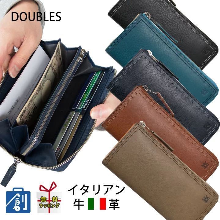 - l字ファスナー 長財布 本革 レザー おしゃれ ブランド DOUBLES サイフ 財布 小銭入れ 大容量 L字ファスナー KSA 7554 ブラック