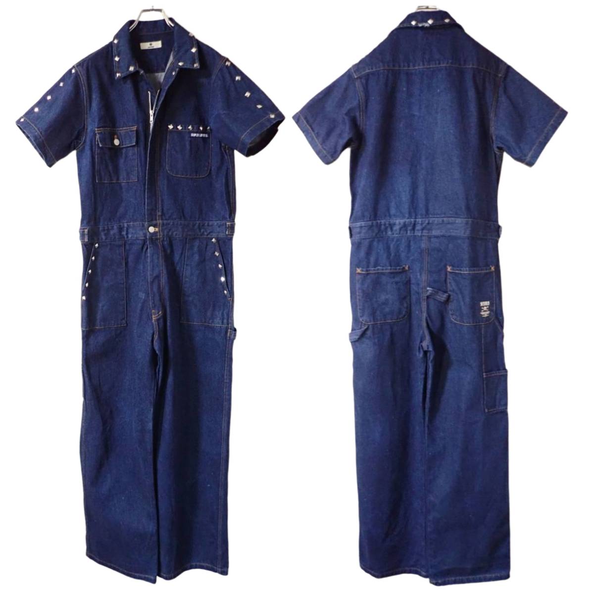 - 4088/希少SUPER LOVERSデニム素材 半袖ツナギ スタッズLOVER'S ROCKビンテージ カバーオールオーバーオールオールインワンワークウェア古着