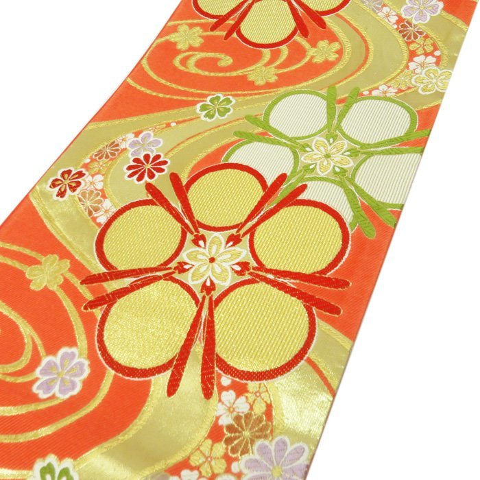 - ★きもの北條★ 振袖用 流水に花模様 リサイクル 着物 成人式 結婚式 結納 パーティー 袋帯 A750-3 【中古】