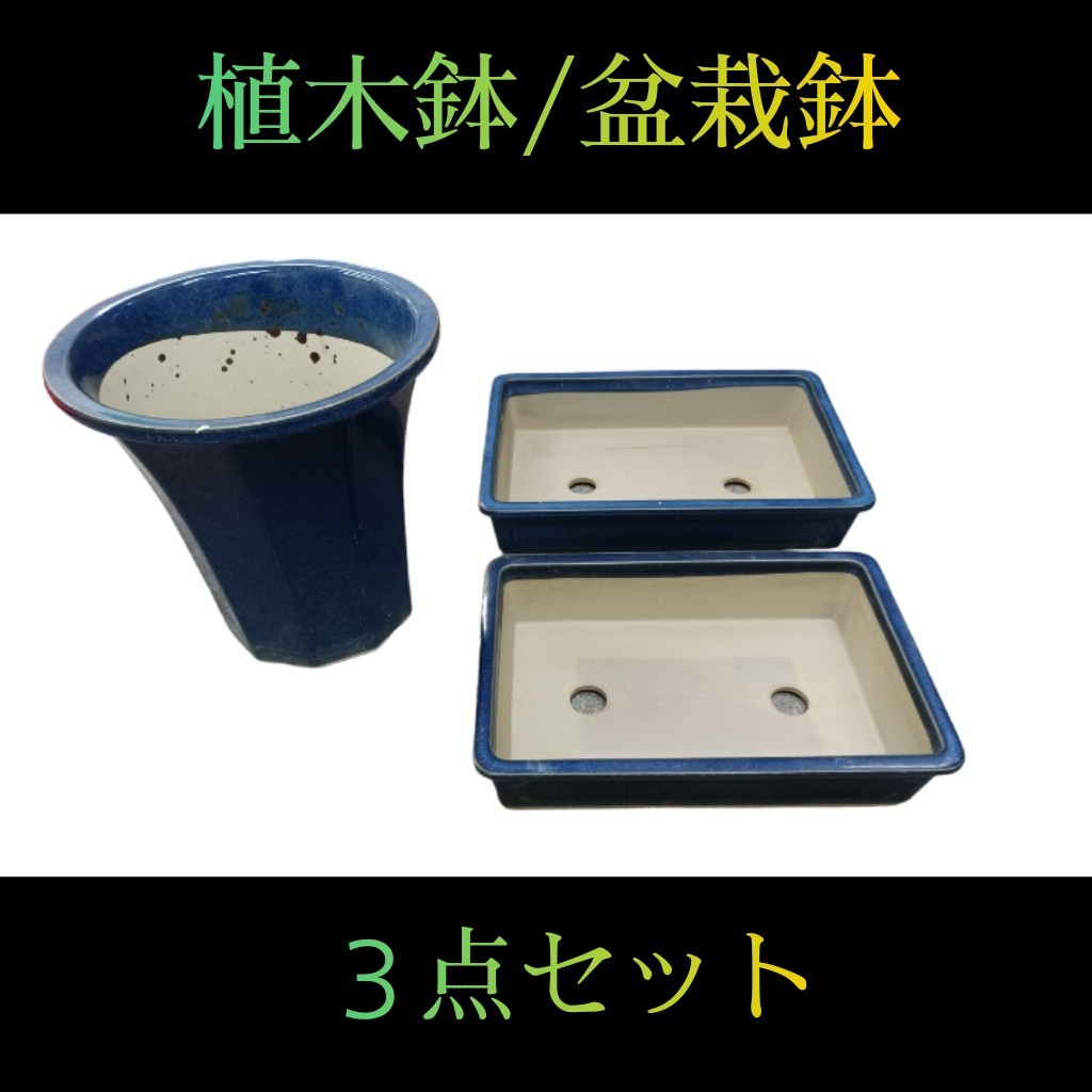 - 岩)3点セット 盆栽鉢 長方形 青 小品盆栽 ミニ盆栽 鉢 植木鉢 蘭鉢 観葉植物 花 草花 丸鉢 園芸 ガーデニング 230525(M-1-3)