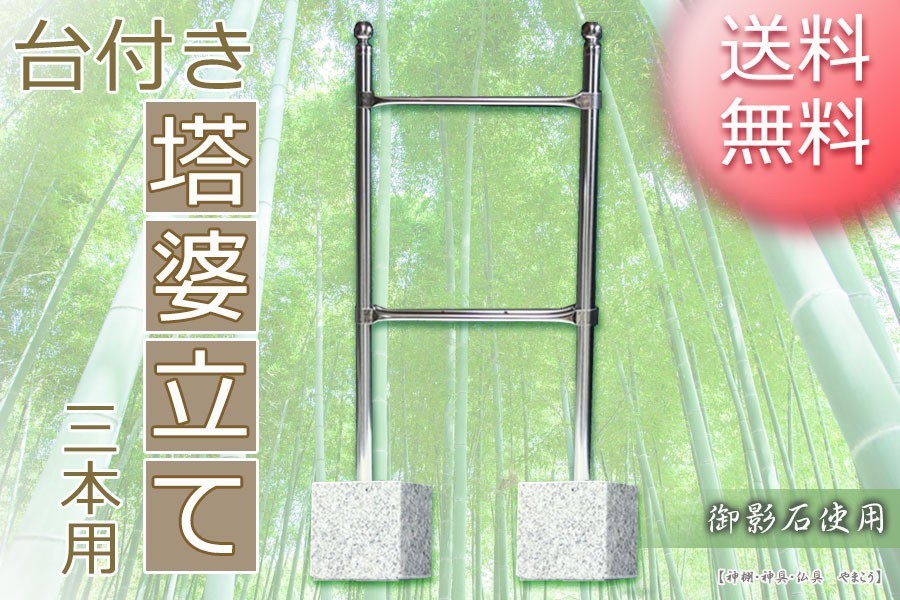 > お墓 石台付 卒塔婆立て 塔ば立て 3本 3コマ 塔婆 卒塔婆 塔ば 国産 ステンレス 幅38.4 高さ86cm お盆 お彼岸 お墓参り 供養 法事