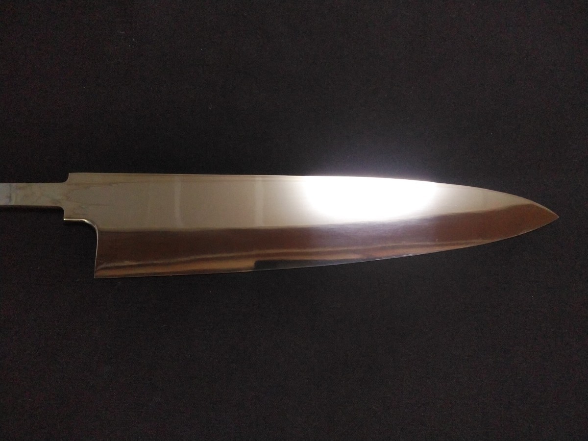 > 城山刃物製作所(堺業務用刃物メーカー直売)八寸 和洋出刃 超鋼スーパー本焼き(セミステン)(錆びにくい)両鏡面 黒檀上下白水牛柄
