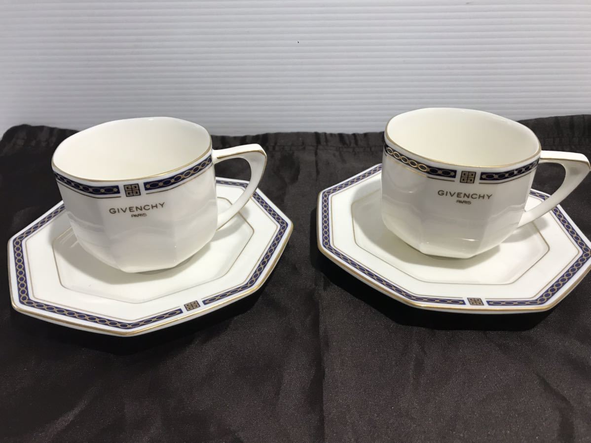 > 未使用ジバンシー 白磁白地金彩カップ ソーサー 2セットGIVENCHY カップ&ソーサー ペア ティーカップ