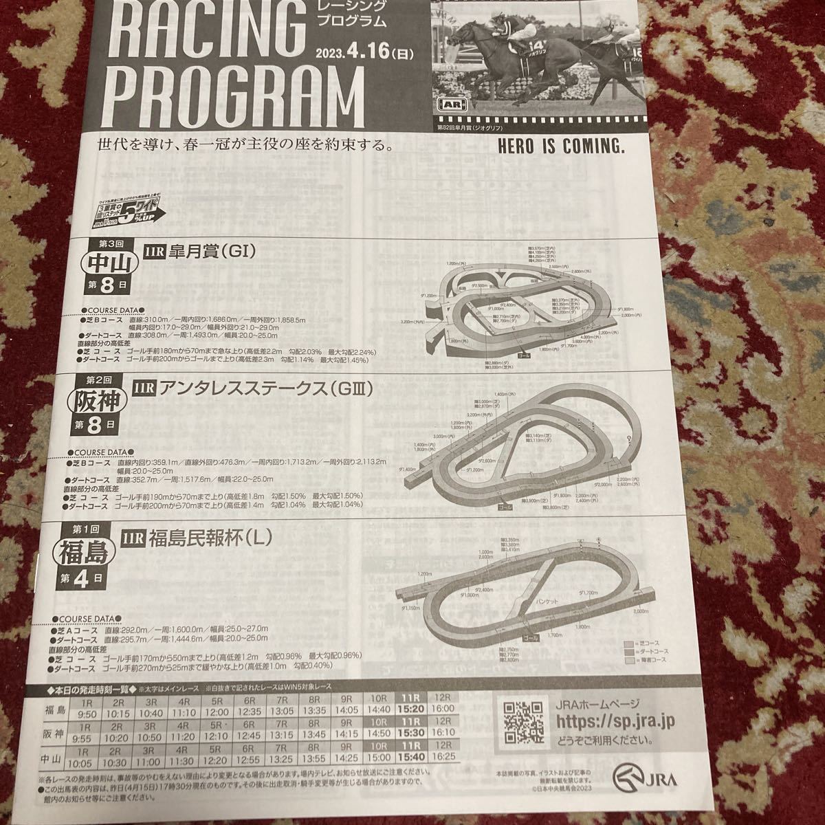 - JRAレーシングプログラム2023.4.16(日)皐月賞(G I)、アンタレスステークス(GⅢ)、福島民報杯(L)
