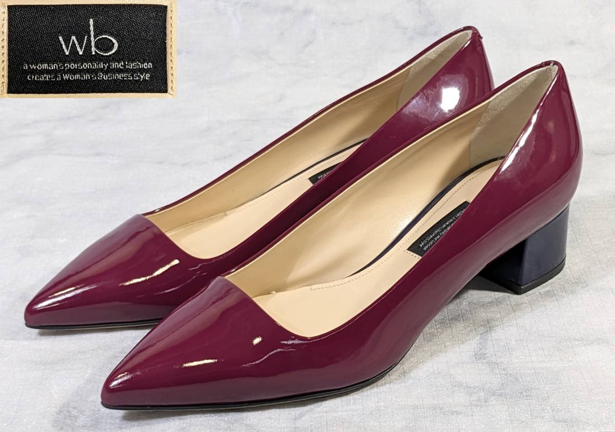 - ★wb/ダブルビー★本革 エナメルパンプス ツートーンカラー サイズ37 約24cm ボルドー/ネイビー★MOGA ITALY