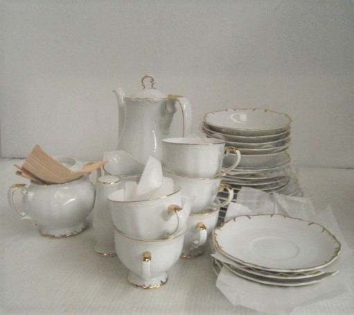> レトロ SONE CHINA NAGOYA 白磁 ティーカップ ティーセット 皿 セット まとめて ゴールドライン 未使用品/19N6.1-7
