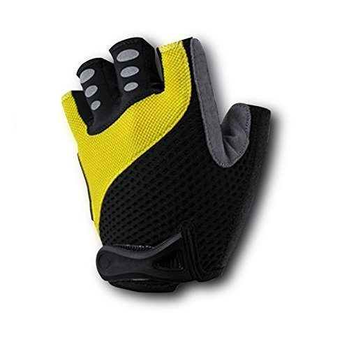 - 【送料無料】サイクリングハーフグローブ 衝撃吸収パット ドットイエロー XL