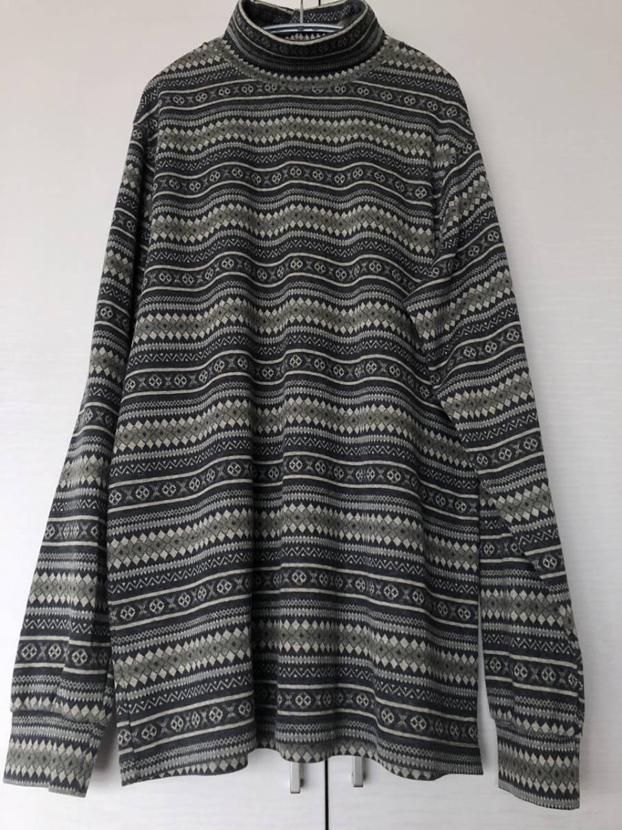 > アメリカ製■ 大きめサイズ 綿100%長袖タートル USAサイズL 42〜44 脇下身幅58㎝ 丈 83㎝ コットン LANDS'END ランズエンド