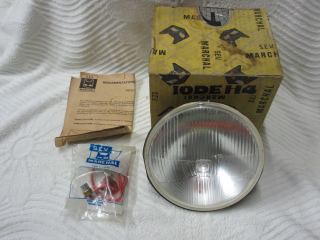 - 即決 未使用1979当時物 マーシャル ヘッドライト ポジションランプ付 丸目4灯 訳有 1個のみ MARCHAL H4 ハロゲン ヘッドランプ 新品 旧車