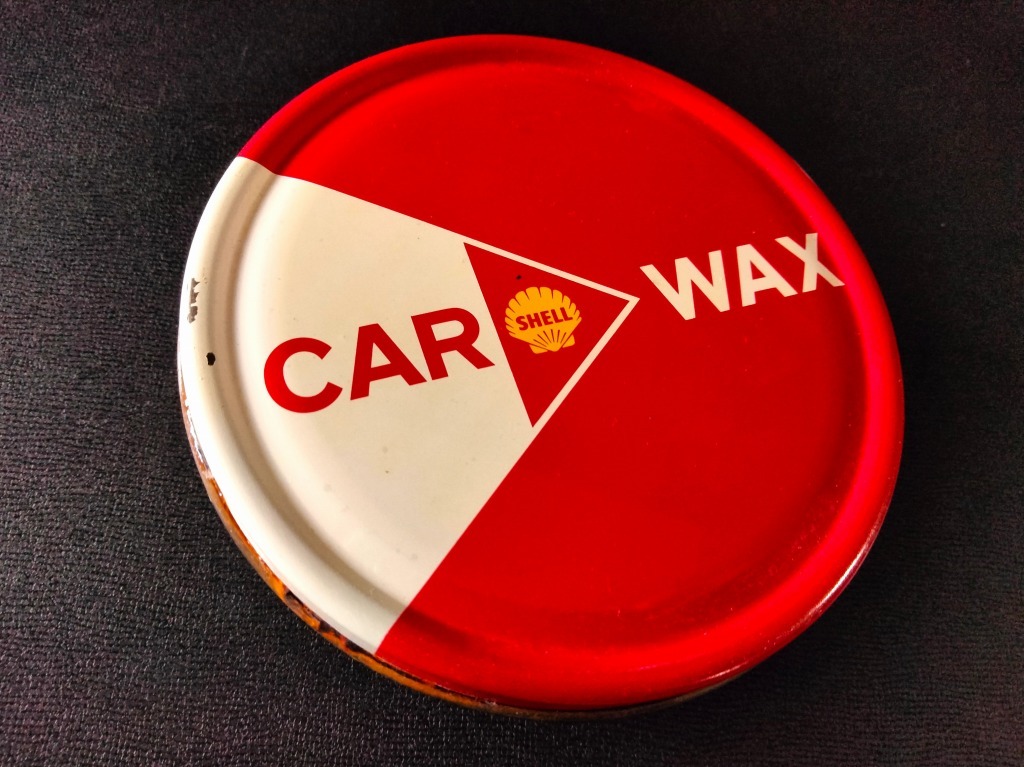 > '60s トレードマーク SHELL CAR WAX 当時物 カーワックス 未使用品!☆ シェル ガソリンスタンド ガレージインテリア 看板 POP スチール缶