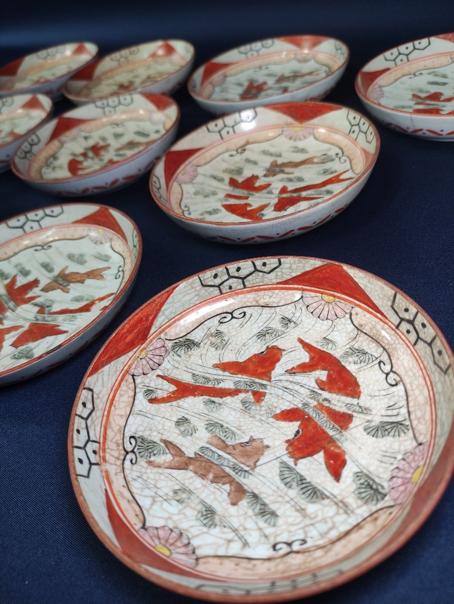 - r45 九谷焼 赤絵 小皿 細書 11客 明治 九谷 時代物 古美術 骨董