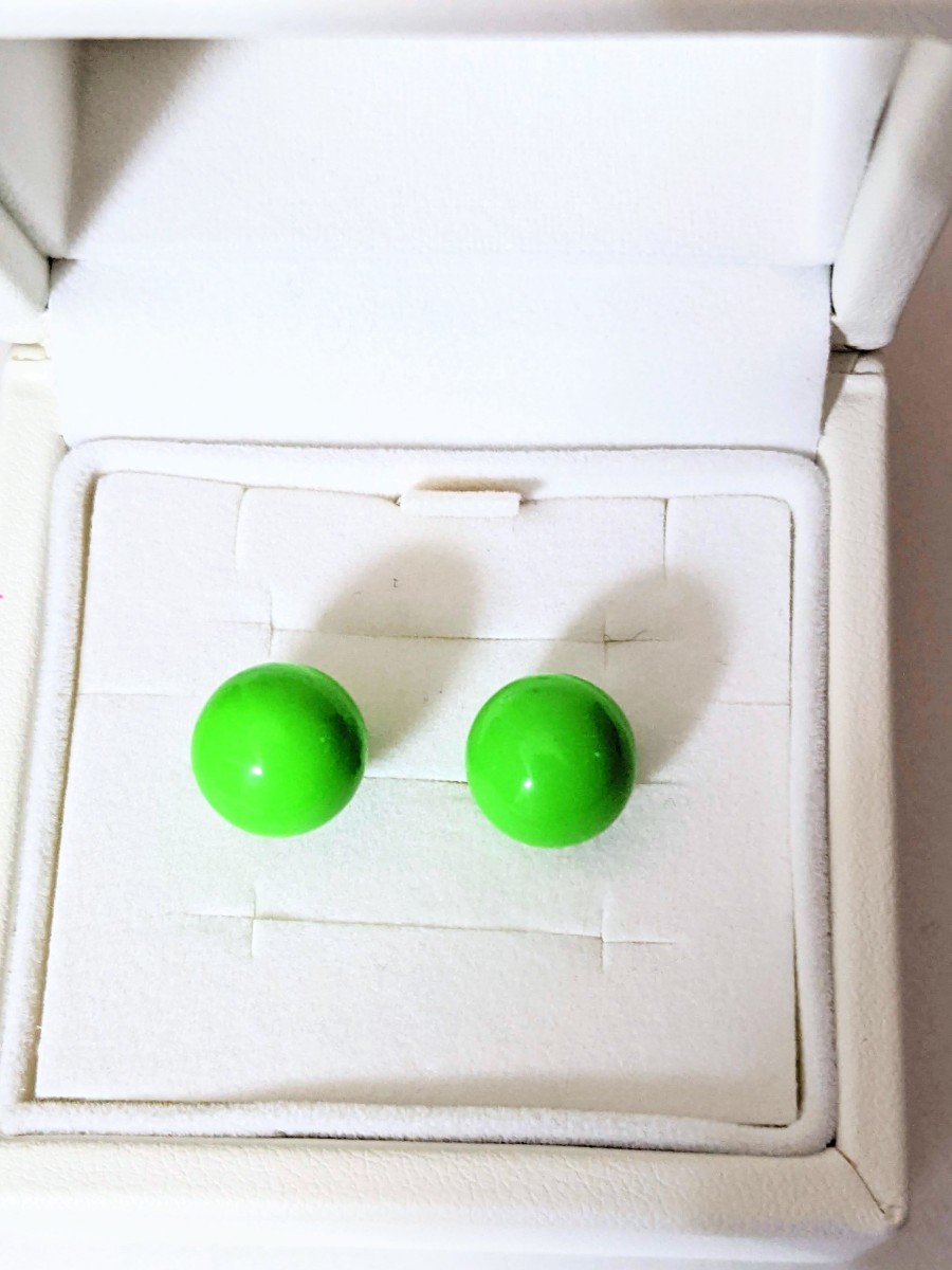 - グリーン ピアス 一粒 グリーンピース 緑 個性派 可愛い シンプル 黄緑 green