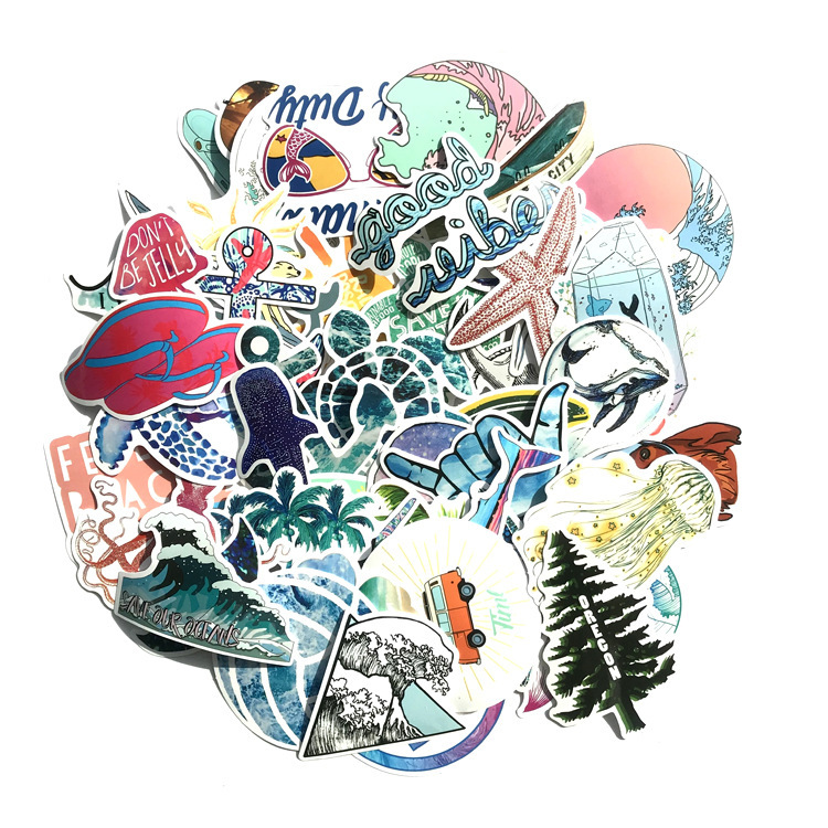 - 50枚 ステッカー サーフィン サマー 海 防水 耐水 シール 詰め合わせ 0038-2