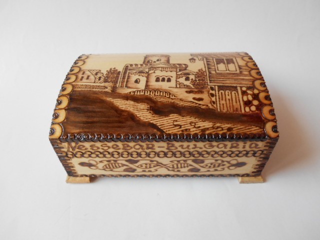 - ブルガリア ハンドメイド 絵付け ピログラフィア 木箱 大 ネセバル 045-1 (9×13)