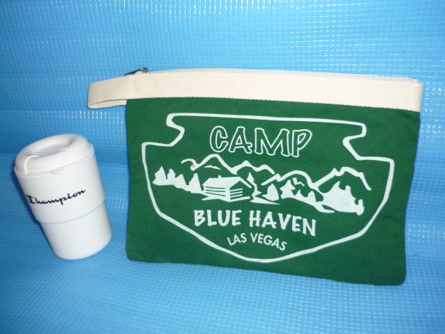 > b★未使用★チャンピオンChampion タンブラとヘミングスCAMP BLUE HAVEN LAS VEGAS キャンバスポーチ