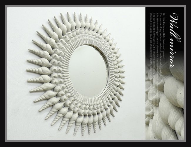 > ◆NK679◆展示品◆ラグジュアリー◆ウォールミラー◆壁掛け鏡◆丸型 丸鏡 ラウンド◆太陽 シェル◆ラグジュアリー◆マリンスタイル◆インテ