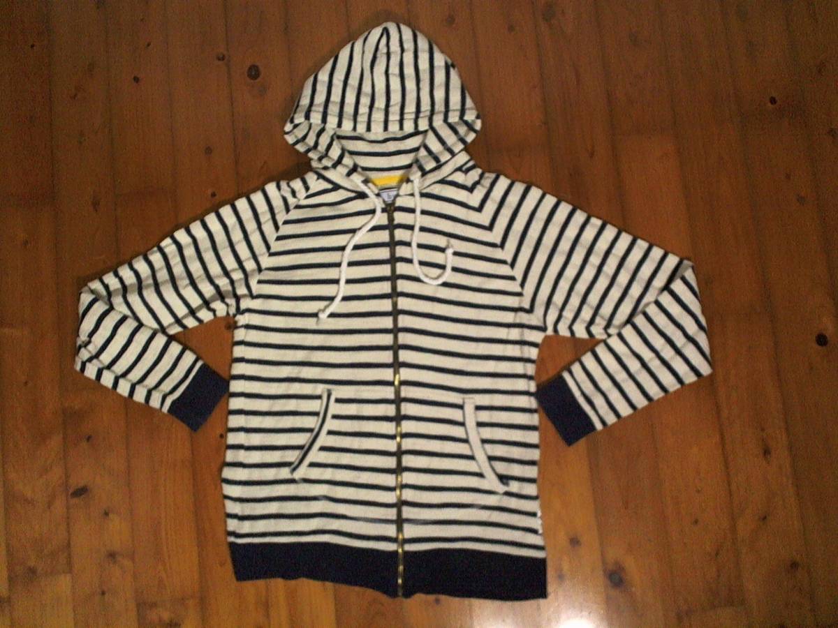 - ★エイチブイシー【HVC】 スウェット裏地 パイル地 ジップアップ パーカー ジャケット ジャンパー XL 白 濃紺 ボーダー系 ユニセックス