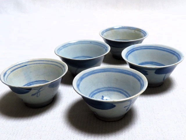 - 煎茶碗まとめて5客 染付 茶道具 煎茶道具 時代