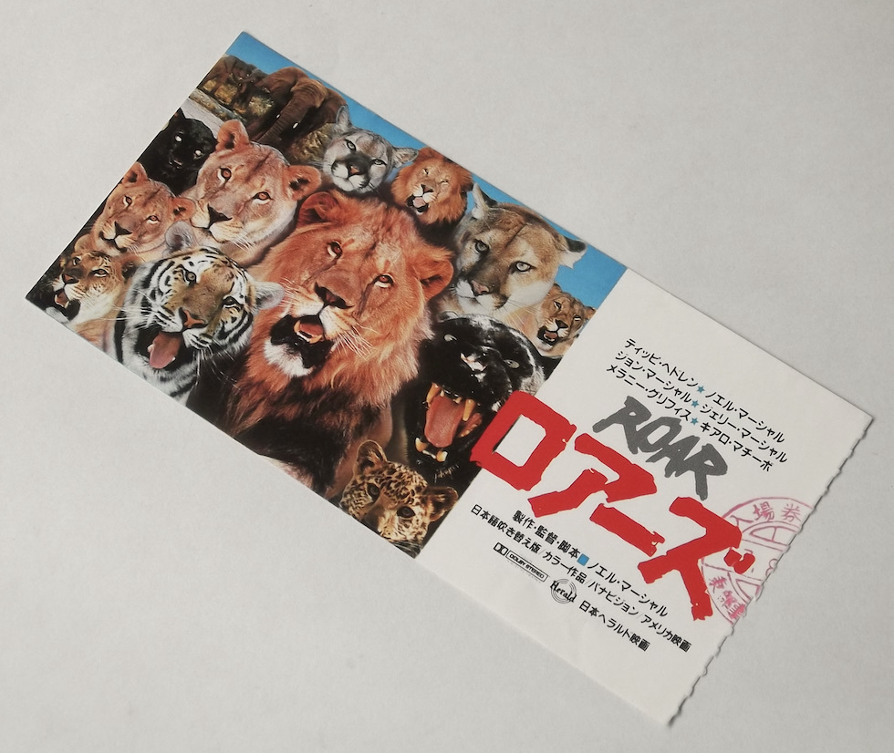 - 1982年 古い 映画 半券 ロアーズ ROAR 猛獣一家はおおさわぎ! チケット 当時物 昭和 レトロ ティッピ・ヘドレン 動物 ライオン トラ