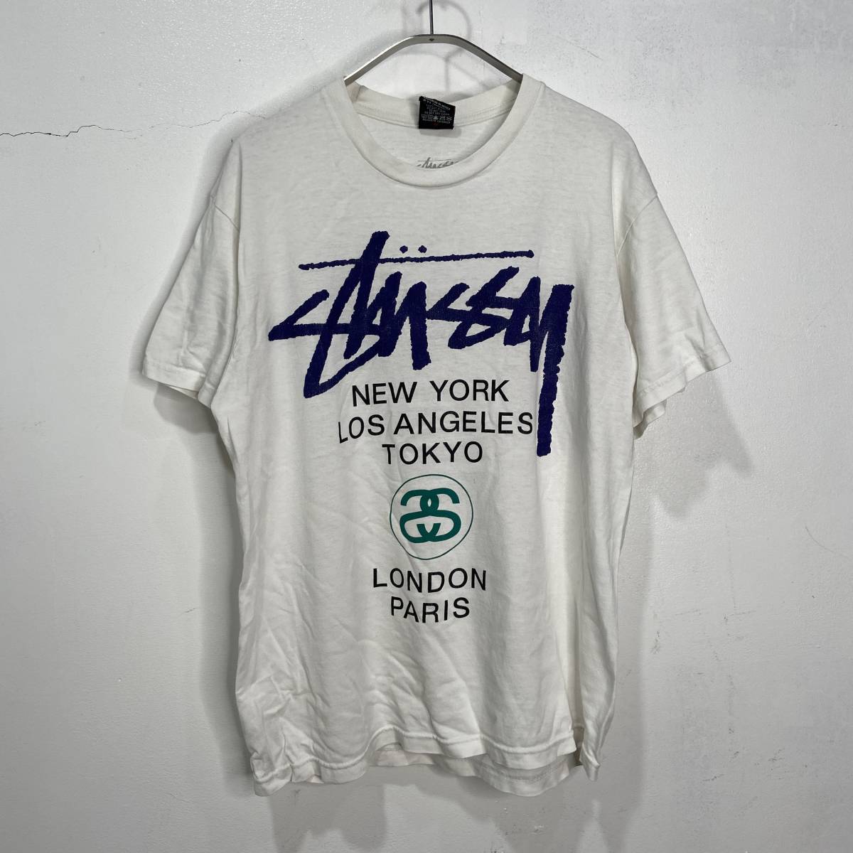 - 送料無料☆Stussy☆ステューシー☆ワールドツアーロゴプリントTシャツ☆00s☆両面プリント☆半袖☆ホワイト☆M☆G23