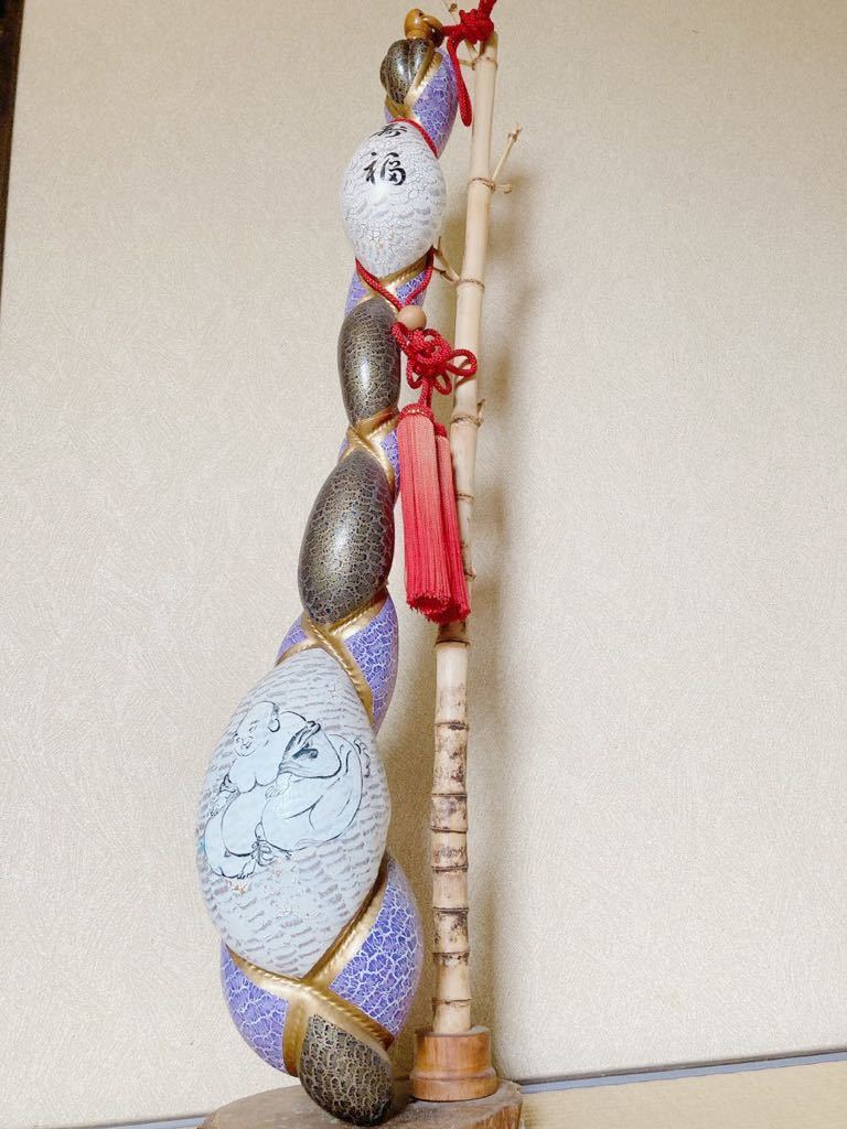 - 縁起物 絵付け飾り瓢箪 特大 寿福 飾り台付 japanese lucky charm gourd Longevity and Happiness Amulet