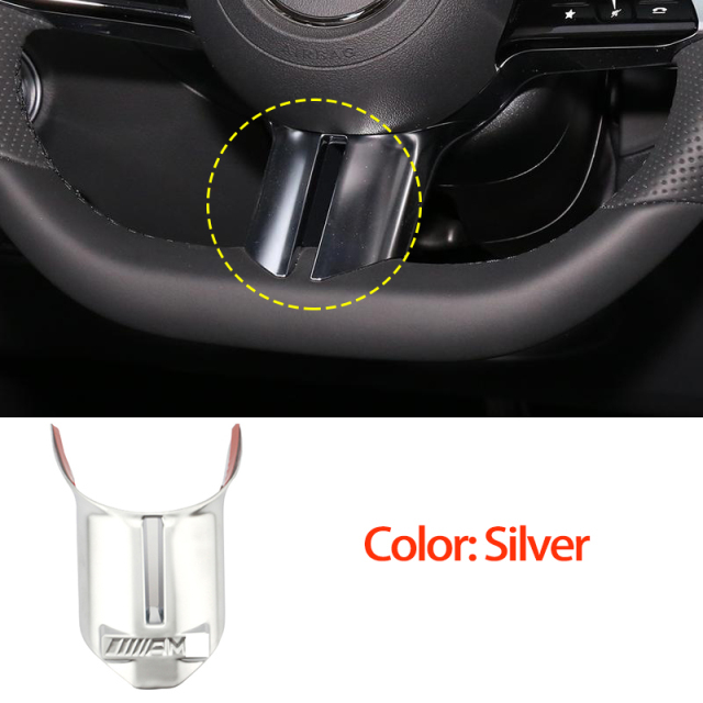 - シルバーメルセデスベンツAMGCESクラスW206W213w2232021+用ロゴ付きABSプラスチックフラットステアリングホイールロアトリム