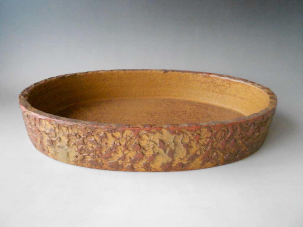 - 花器! ☆松皮楕円水盤☆ 未使用 フラワーベース 花瓶 花入れ 花生け 華道 茶道 インテリア小物