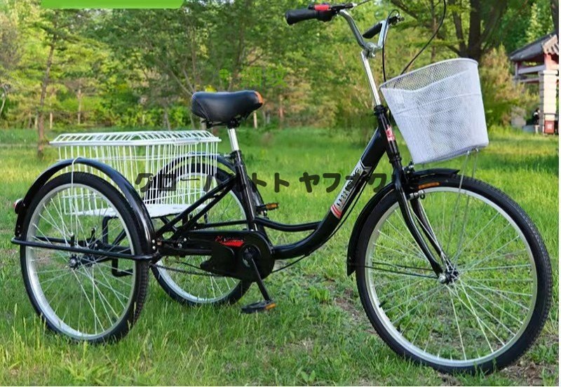 - 実用★ 24インチ三輪自転車 折りたたみ 三輪安心 ロータイプ 車輪ロック 大容量 後カゴ付 収納便利 大人 高齢者用 高さ調節可能 組立 S759
