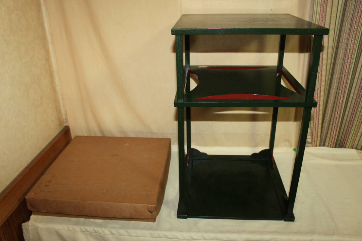 - ■碌々斎好写 青漆爪紅糸巻棚 天然木 茶道具 紙箱