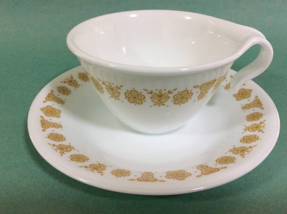 - 【オールドコレール】バタフライゴールド スタッキングカップ&ソーサー /Ex