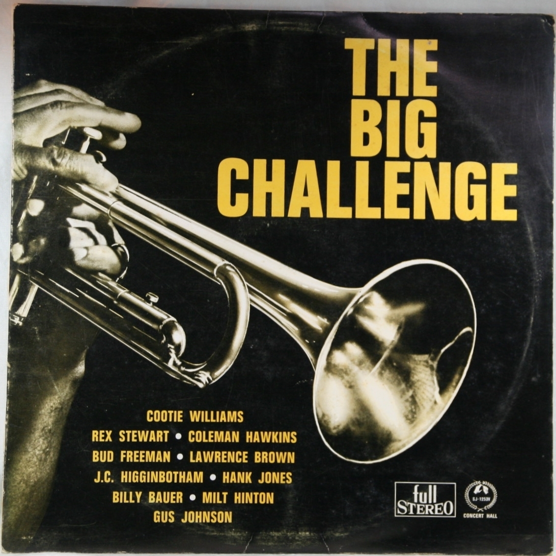 SJ-1253V CONCERT HALL SOCIETY 中古LP「THE BIG CHALLENGE / ビッグ・チャレンジ」COOTIE & REX SIDE A1 I'm Beginning To See The Light2 Do Nothing Till You Hear From Me3 Alphonse And Gaston SIDE B1 Walkin' My Baby Back Home2 When Your Lover Has Gone3 Rex' time4 I've Got A Right To Sing The Blues COOTIE WILLIAMS(tp)REX STEWART(cor)LAURENCE BROWN(tb)COLEMAN HAWKINS(ts)BUD FREEMAN(ts)BILLY BAUER(g)HANK JONES(p)他 盤質:両面に薄いスリキズありジャケット:シミ、擦り切れ、角当てあり(画像判断ください) 国内盤 1964年度国際ジャズ大賞受賞 送料は送料・配送についてをご覧ください。中古レコードに関してご理解のうえご入札ください