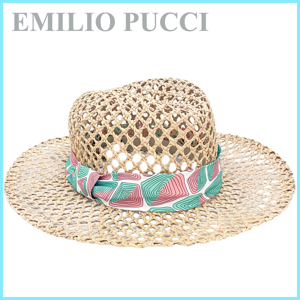 - 新品EMILIO PUCCIエミリオプッチTartucaプリント麦わら帽子(ストローハット)グリーン★