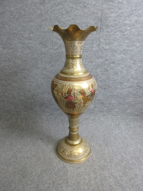 - 【政】32842 黄銅花瓶 外国製 エジプト模様 花生 花入 生花