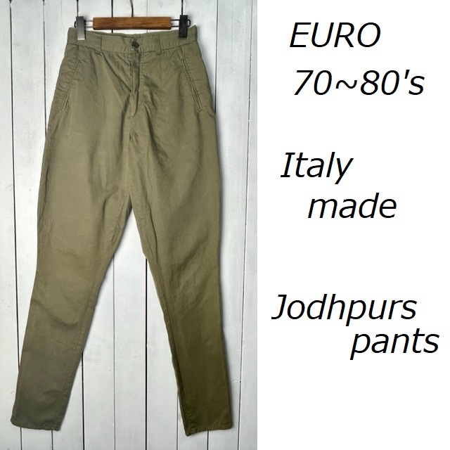 > EURO古着 70s~80s イタリア製 春夏 コットン ジョッパーズパンツ 42 緑 オールド ヴィンテージ 薄手 ワイドテーパード ヨーロッパ●198