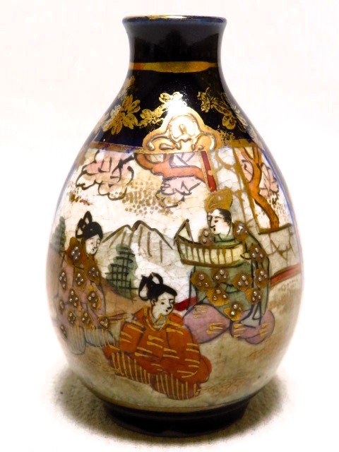 - 薩摩小花入 瑠璃金彩人物桜文 小徳利 時代