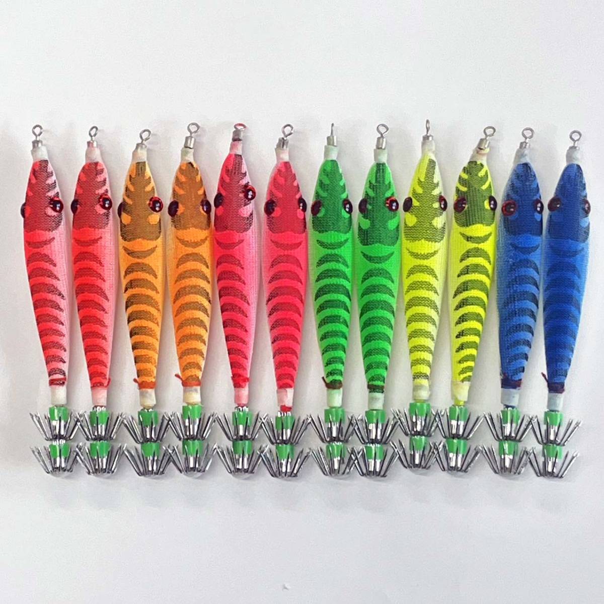 - 浮きスッテ 4号 12本 人気6色セット アオリイカなど イカ釣り エギング仕掛け 訳有未使用品 wkst4h6eye12-7