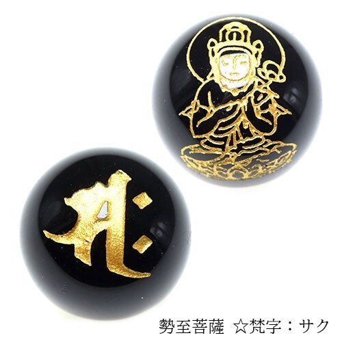- 金彫り 両面 守護神 梵字 オニキス ビーズ【粒売り】 16mm 勢至菩薩 サク 1個 〔I47-saku-16m〕