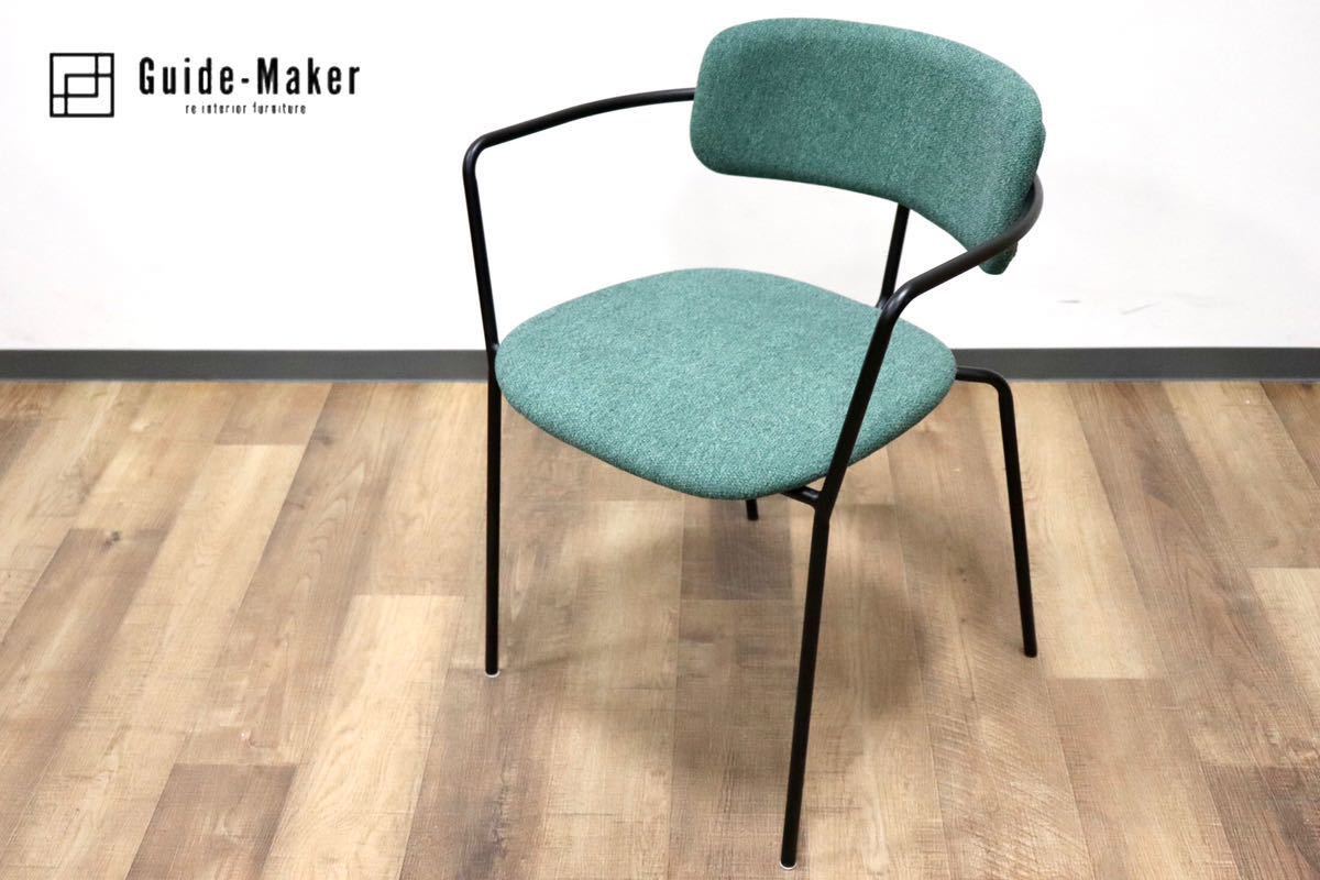 - GMGK246A○東谷 PC-257GR アームチェア スタッキング ダイニングチェア スチール ファブリック グリーン モダン 定価2.3万 展示品