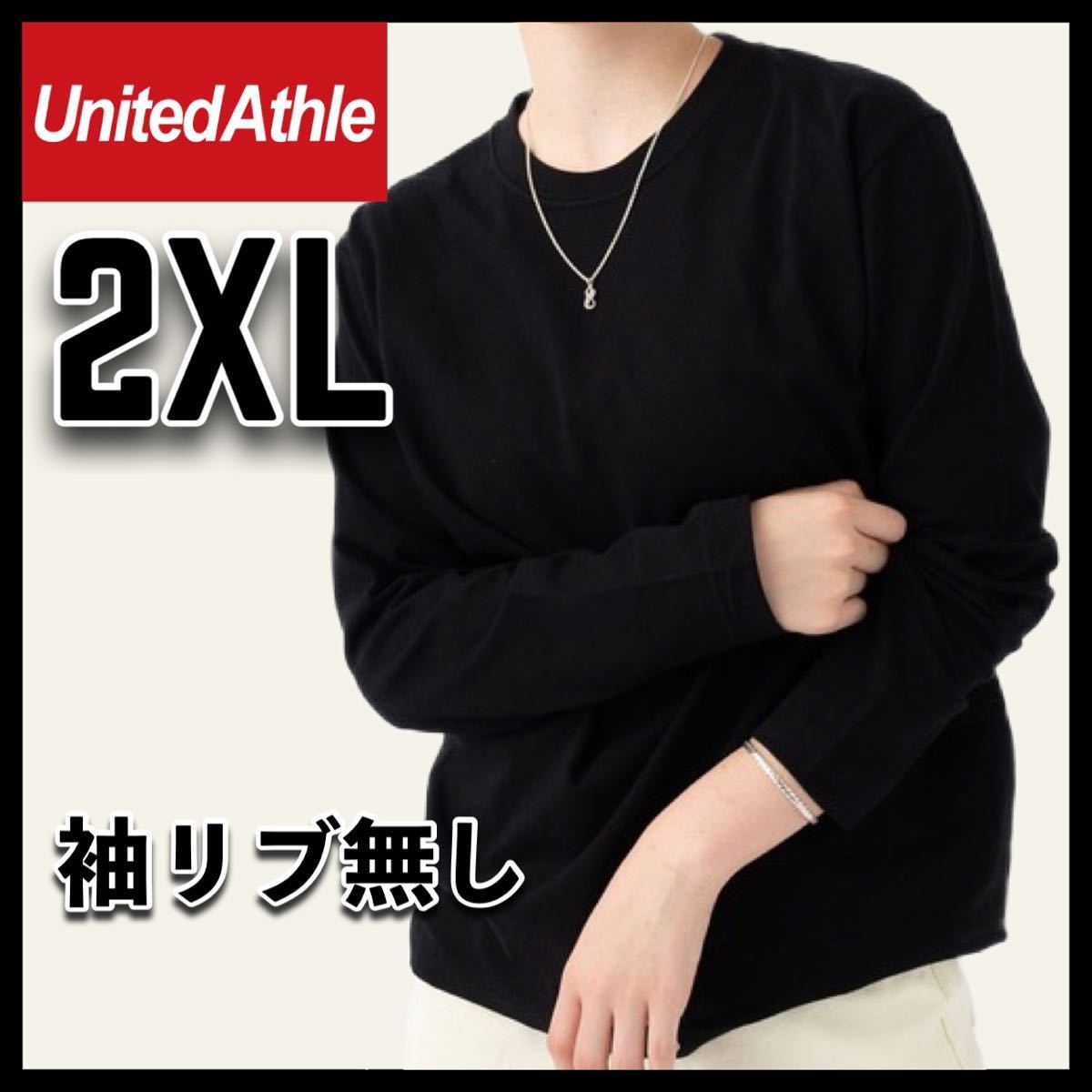 - 新品未使用 ユナイテッドアスレ 5.6oz 無地 袖リブ無し 長袖Tシャツ ロンT 黒 ブラック 2XLサイズ United Athle ユニセックス