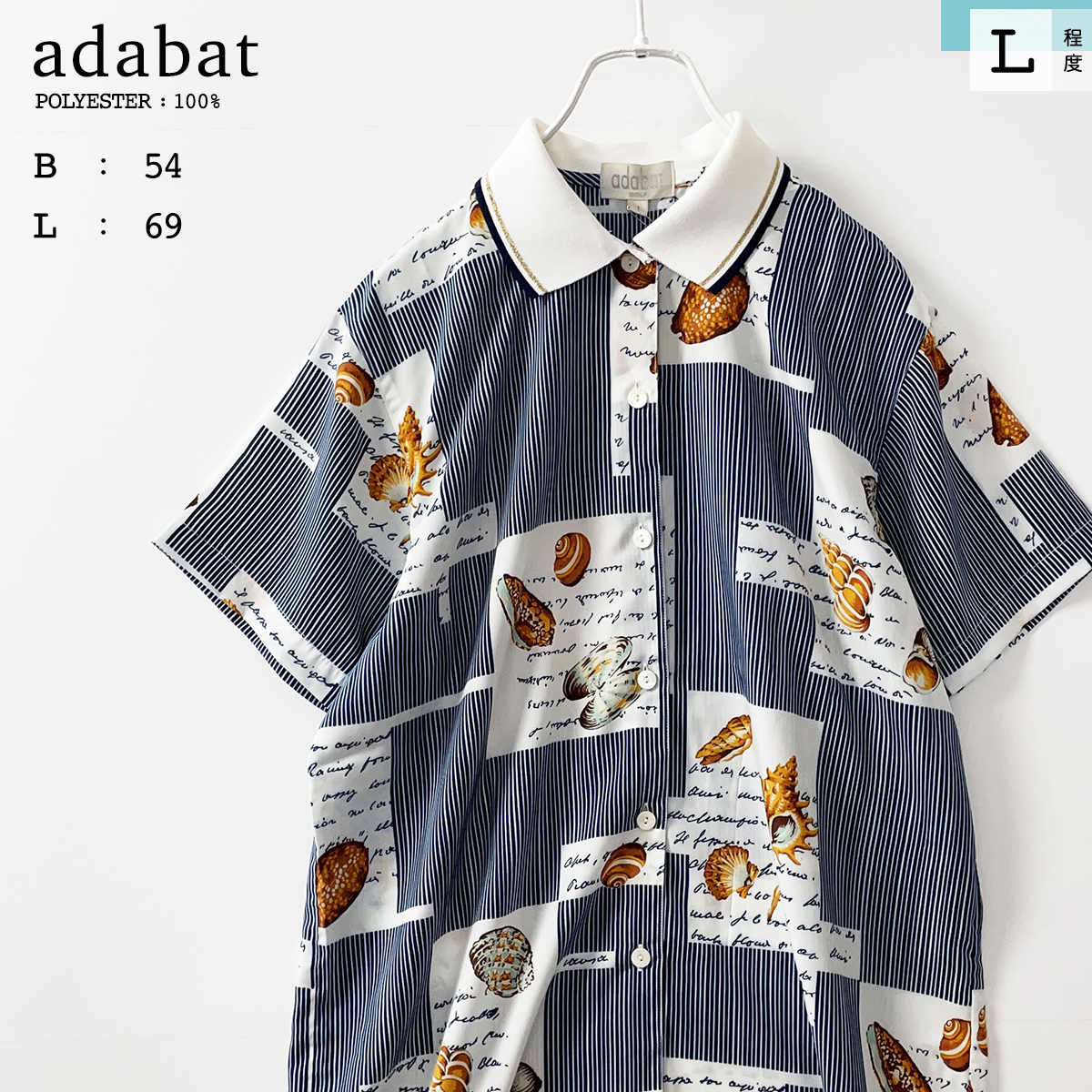> adabat ポリエステル 100% ボックス 半袖 パッチワーク 柄 シャツ 青 ブルー 紺 ネイビー 総柄 クレイジーパターン 夏 アダバット メンズ L