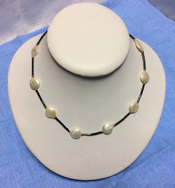 - 天然淡水真珠 ネックレス オリジナルデザイン ステンレスワイヤー ヘマタイト